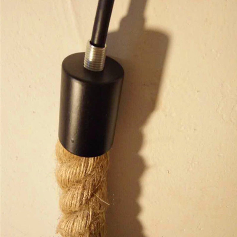 Retro Industrial Linen Rope Pendant Light 1-Light Bare Bulb Hanging Lamp For Dining Room