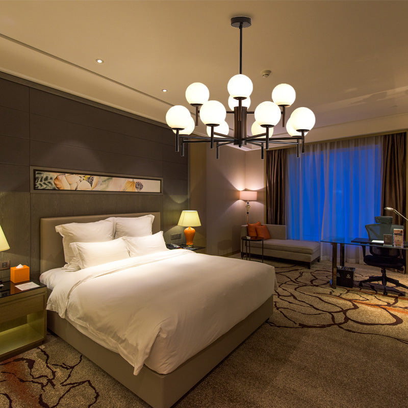 Contemporary Black And Gold Globe Chandelier With Radiant Design Milk Glass Shades - Available In 6