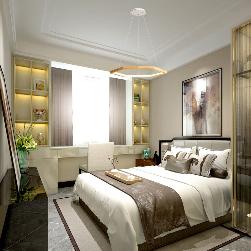 Contemporary Hexagonal Wood And Acrylic Pendant Chandelier With Led Lighting 16’/19.5’/23.5’