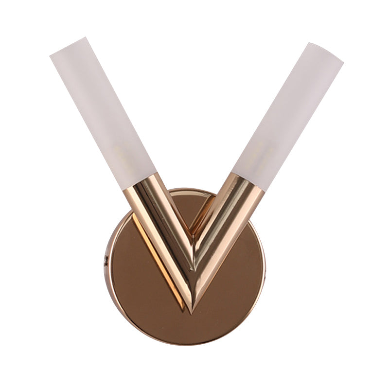 Modern Gold LED Wall Mount Bedroom Sconce Light with V-Shaped White Glass Shade