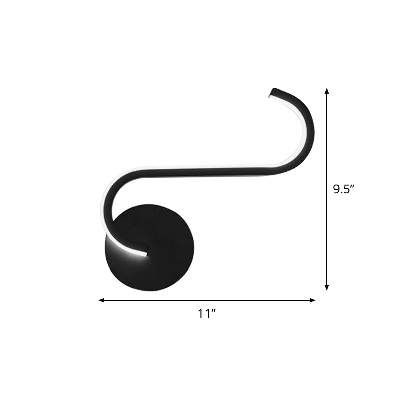 This Circuitous Bedside Wall Light Fixture is an elegant and stylish addition to any home or workspace. This modern wall light has a black aluminum finish and comes with LED light sources, giving off a warm or white color temperature. With elegant curves, the light fits any contemporary or contemporary-meets-traditional decor. Thanks to an aluminum shell, the fixture is durable and provides a longlasting light which requires neither frequent maintenance nor replacements. The light dimensions measure 9.5 inches height, 11 inches width, and 2 inches depth, making it a perfect addition for a variety of wall spaces.