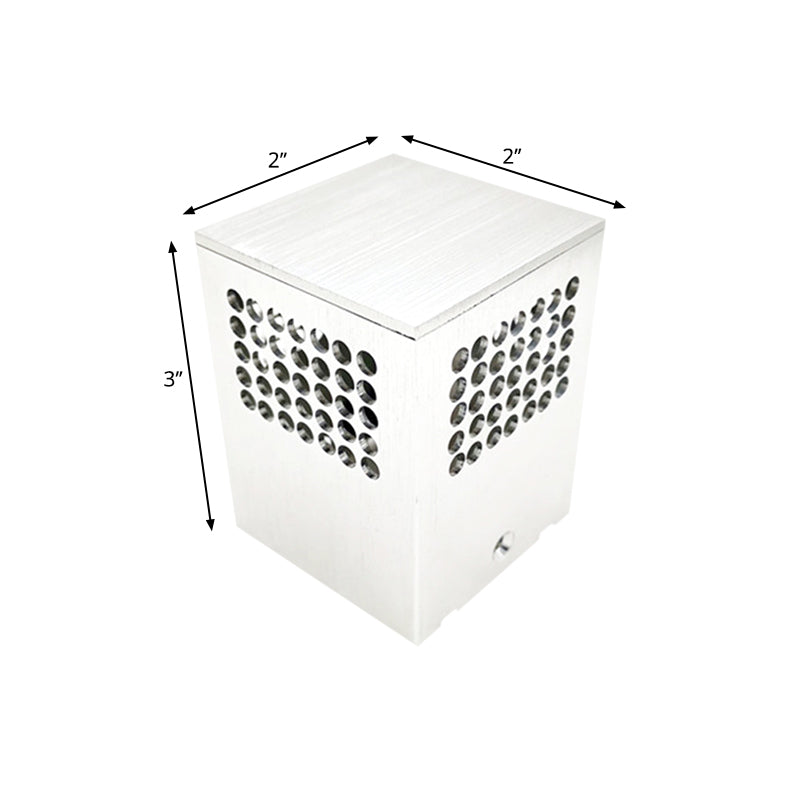 This wall light has a modern design and is made of metal. It is silver in color and has a blue/red/purple light. It is LED lighting and comes with a shade. It is 2" in height, 3" in depth, and 2" in width. It has a maximum bulb wattage of 39 watts and is SMD lighting.
