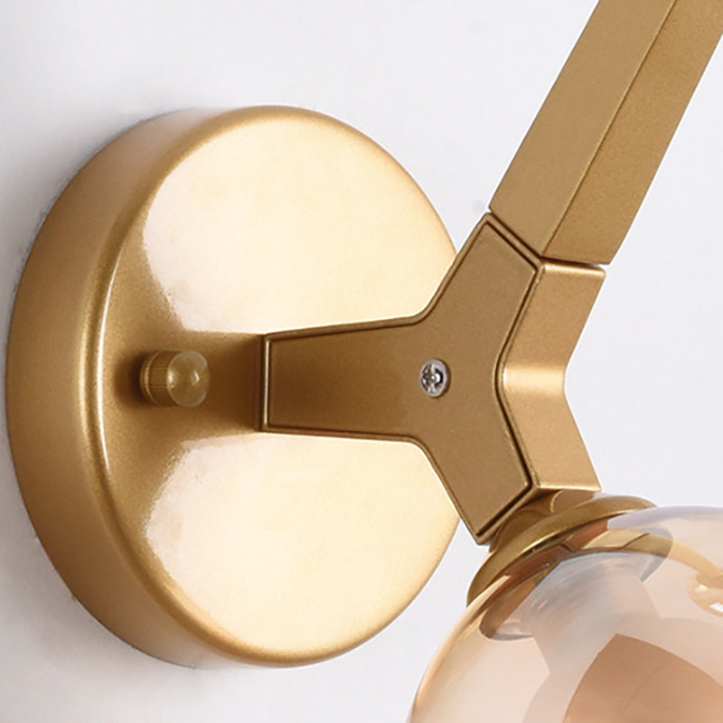Modern Double Globe Wall Lamp - Glass Shade Sconce Light Fixture in Gold/Black Finish for Corridor