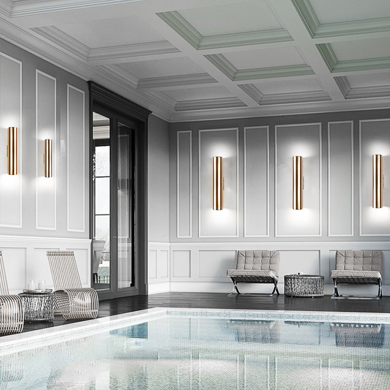 Gold Cylinder Wall Sconce Fixture Modern Style 2"/3" Width LED Metal Wall Lamp in Gold for Corridor
