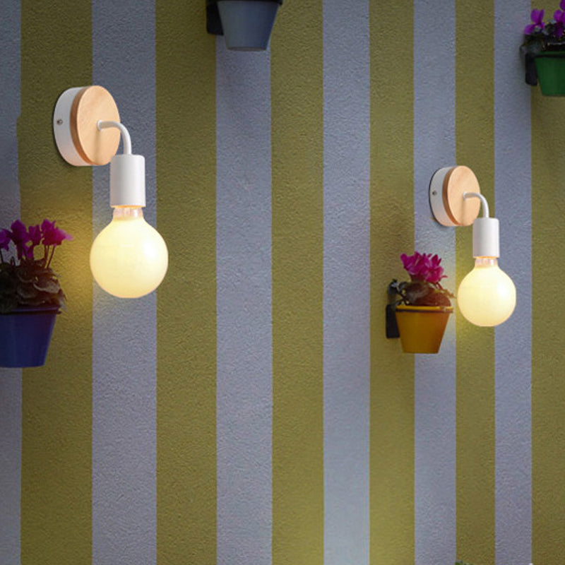 Iron Bend Rotatable Wall Lighting Minimalist Sconce - 1 Head, Black/White-Wood with Exposed Bulb Design
