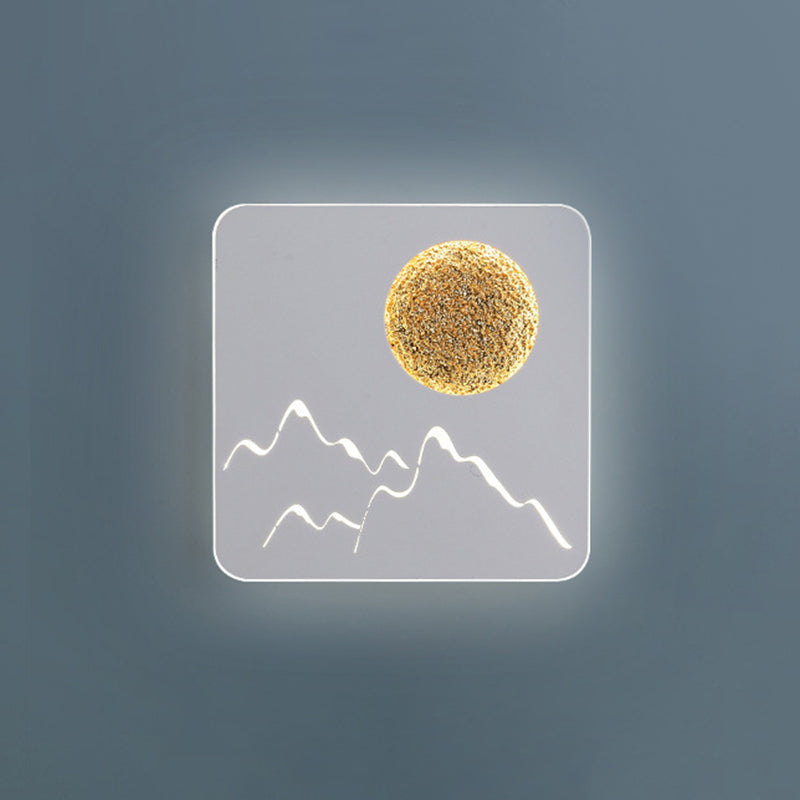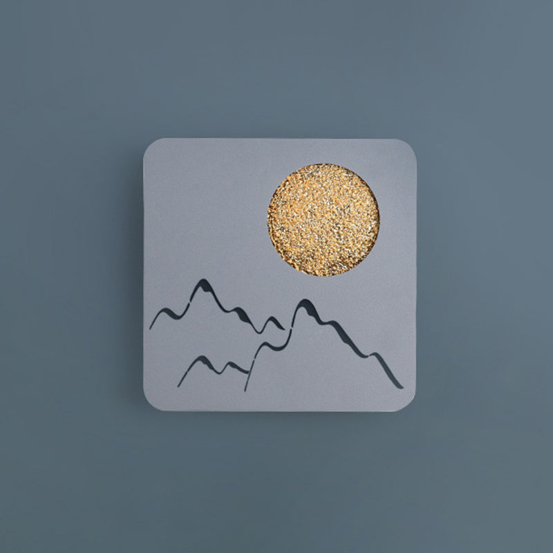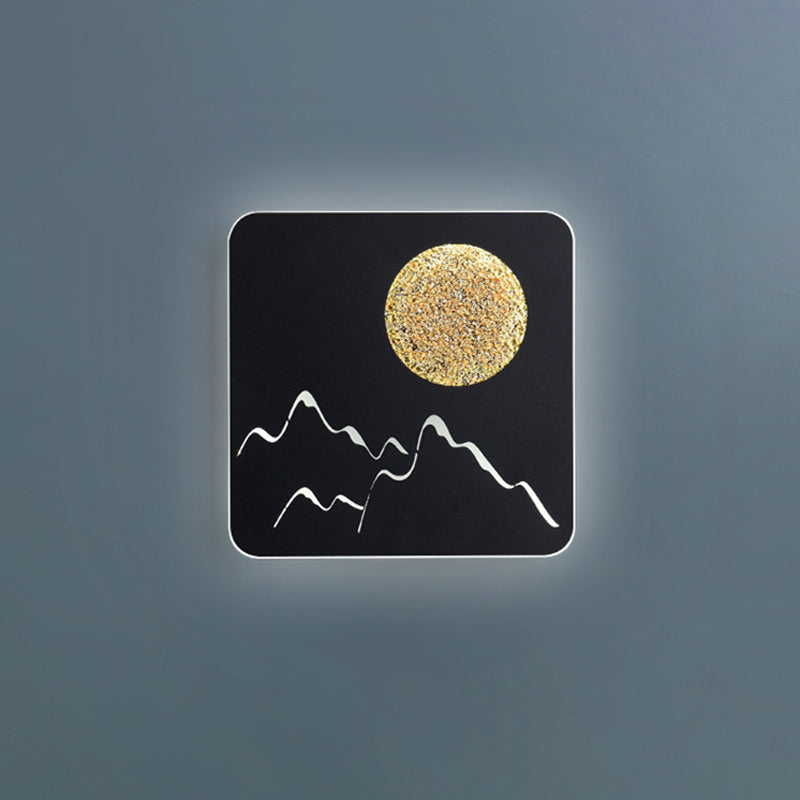 Nordic Minimalist LED Flush Mount Wall Light Sconce - Mini Round/Square Design in Black/White/Grey with Full Moon-Mountain Pattern