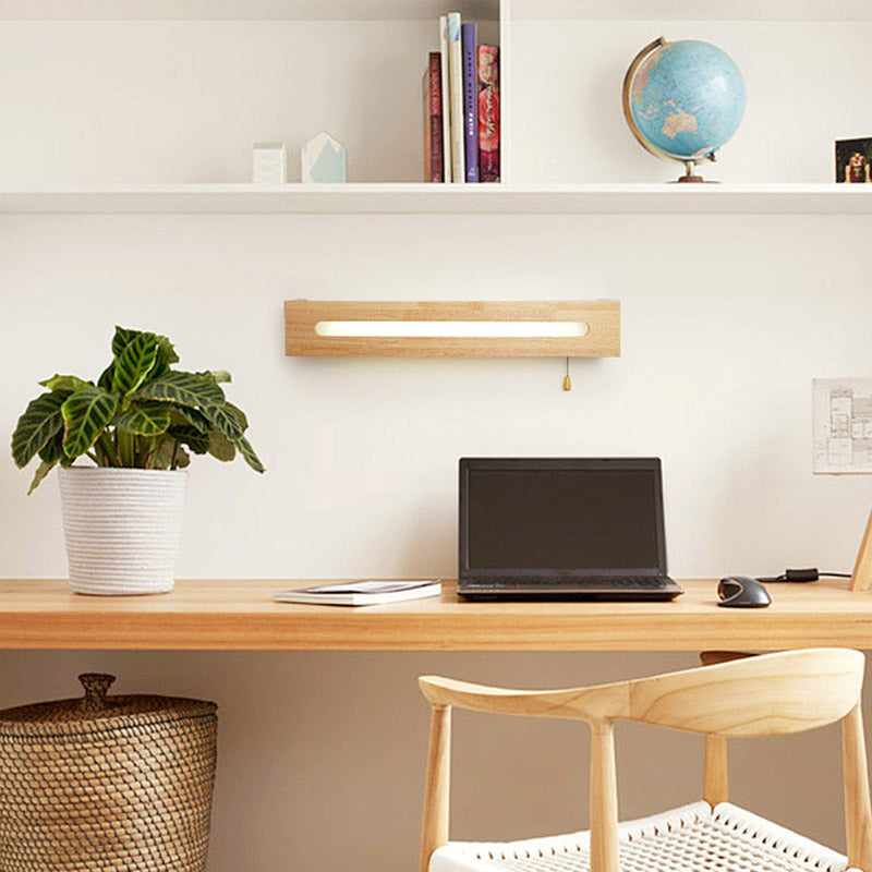 Led Wood Wall Sconce With Pull Chain For Bedside Lighting