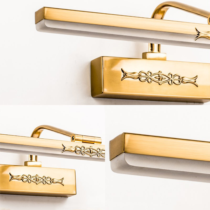 Introducing the Vintage Linear Metallic Wall Sconce Light Integrated LED Vanity Lighting Fixture in Brass Finish. This stunning sconce light with its sleek yet modern design will bring a stylish touch to any room! This product has a length of 15" and a backplate width of 7". It has a stylish metal fixture with a width of 8" and a height of 9 inches or less. It also features a luxurious brass finish for a contemporary look. In addition, the light type is integrated LED with a voltage of 220V-240V 110V-120V and the color temperature is a powerful Third Gear. The bulb base is SMD and the maximum wattage is 39 watts or less. The light is so versatile that it can fit most decor styles such as modern, contemporary, classic and more. It is also designed with an advanced bulb system, so you can install your light with ease. This product includes a bulb and has a single light design for providing perfect illumination to your space. So don't wait, purchase this product and transform your home with this gorgeous light fixture today!