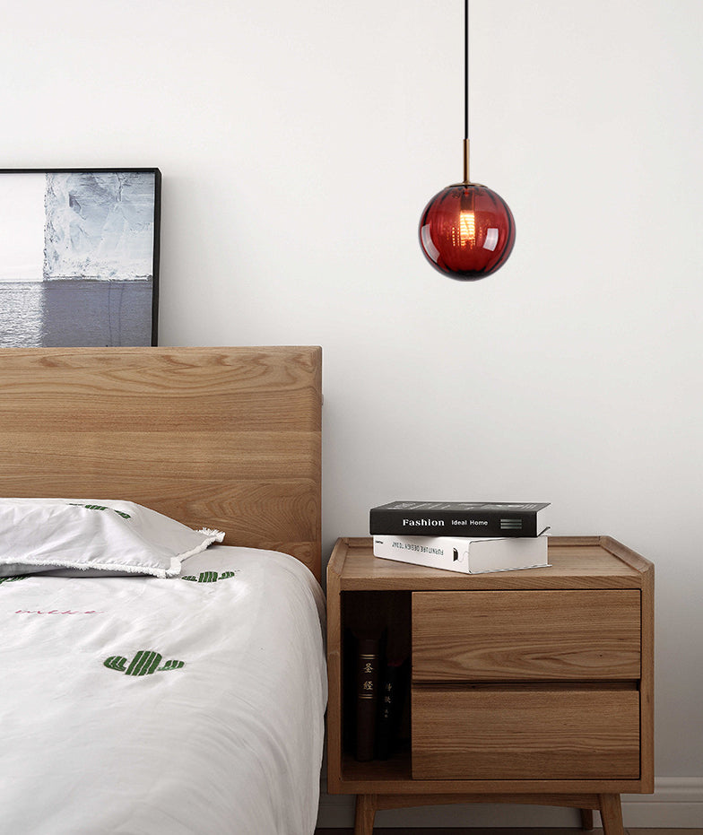 This fixture is perfect for bringing a touch of post-modern class to any room. It hangs from the ceiling by a metal chain or cord and has a round canopy. The fixture itself is made of metal and is in the shape of a water glass globe. The light shines out from the top and casts a warm glow over the surrounding area. This light is perfect for use in restaurants, living rooms, bedrooms, or anywhere else you want to add a touch of luxury. It requires a single E26/E27 bulb, which is not included. The fixture is available in smoke gray, purple, blue, and amber.