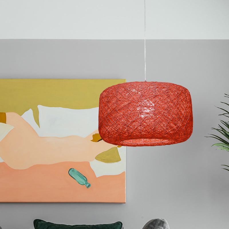 Modern Woven Rattan Drum Hanging Light Fixture - 8/12 Diameter 1 Head Pendant Lamp Black/White Red /