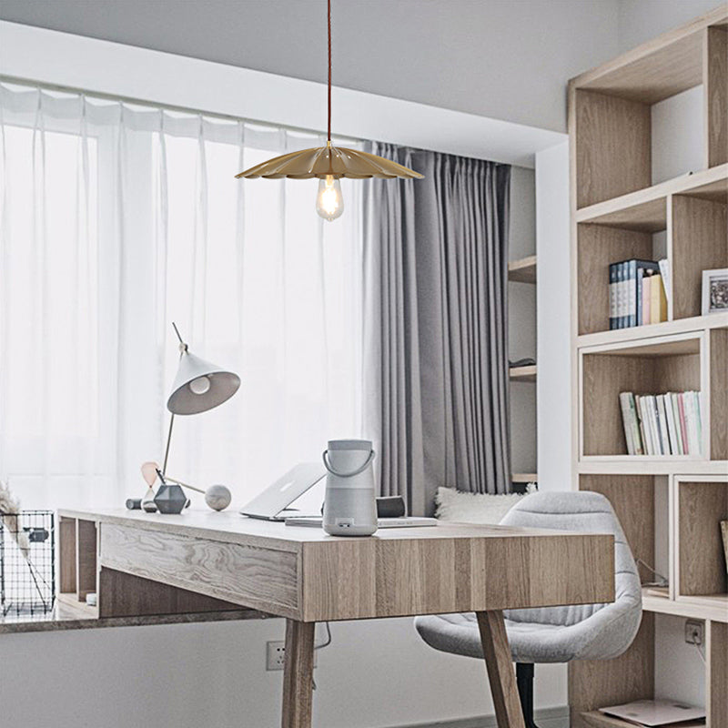 Vintage Scalloped Brass Ceiling Pendant Lamp - Study Room Lighting Fixture