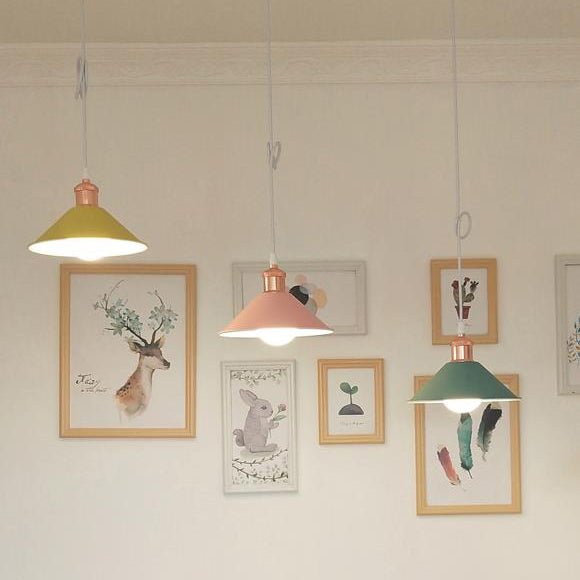 This product is a conical suspended lamp in black or white. It is made of metal and has a hanging light fixture. It is designed for living room use. It is voltage 110V-120V or 220V-240V and has a bulb base of E26/E27. The light type is LED/Incandescent/Fluorescent.