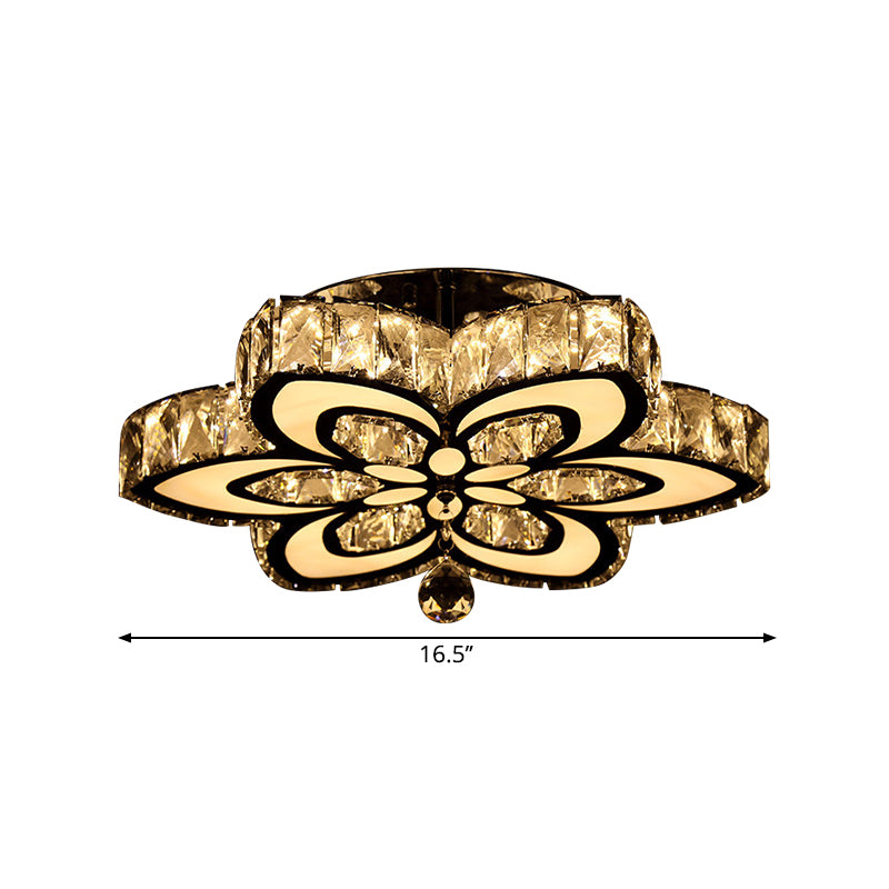 Simplicity Led Crystal Block Semi Flush Light - Chrome Ceiling Fixture (Large/Small Sizes) / Large