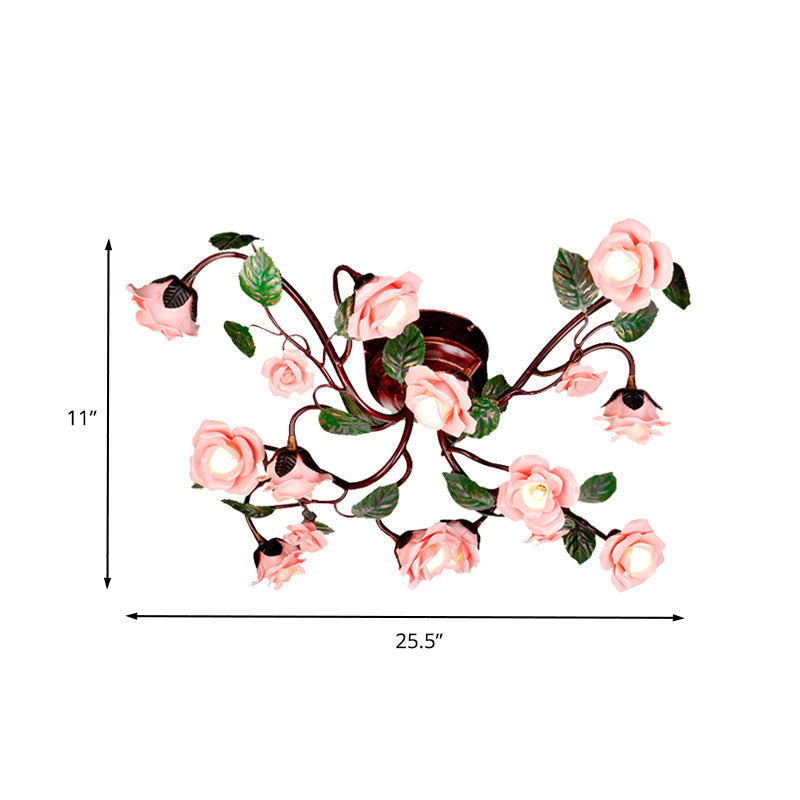 Easy to install, the Rose Bedroom Semi Flush Mount American Garden Metal 12 Heads Dark Brown LED Close to Ceiling Light fixture will provide perfect lighting for your home. With its attractive design and energy-saver feature, it is the perfect combination for a contemporary, homely environment.