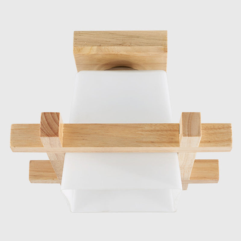 Ultra-Contemporary 1-Light White Glass Semi Flush Chandelier Ceiling Light For Hallway Wood / Square