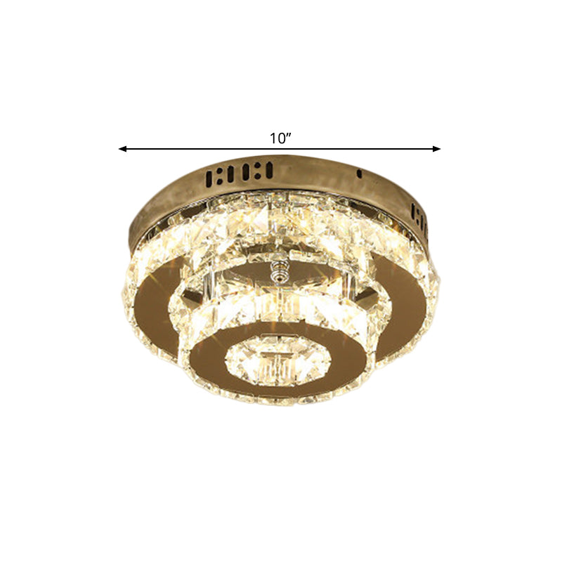 Contemporary Stainless-Steel Led Semi Flush Mount Ceiling Lamp With Clear Crystal Blocks / Round