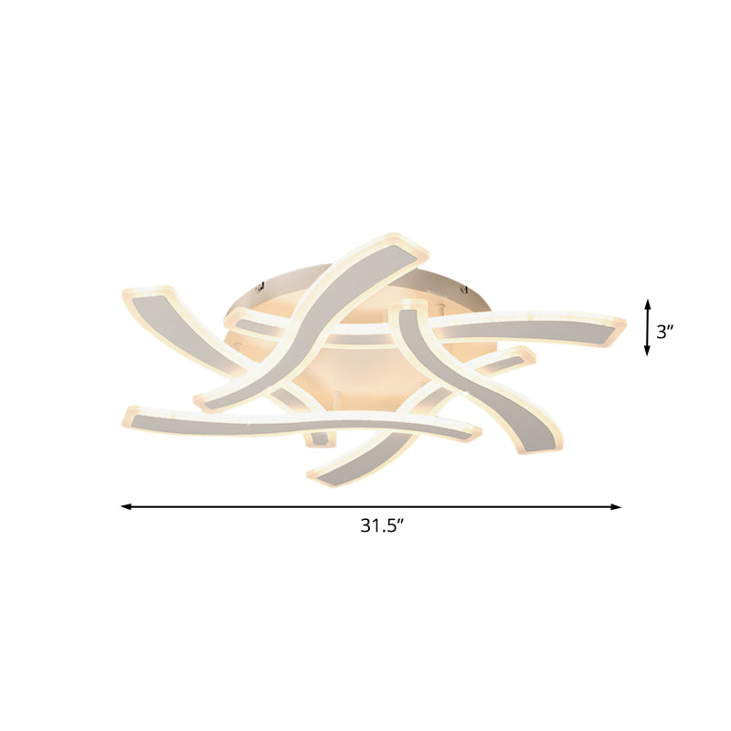 White Cross Wave Flush Mount LED Ceiling Light for Bedroom - Modernist Design and Warm White Ambiance