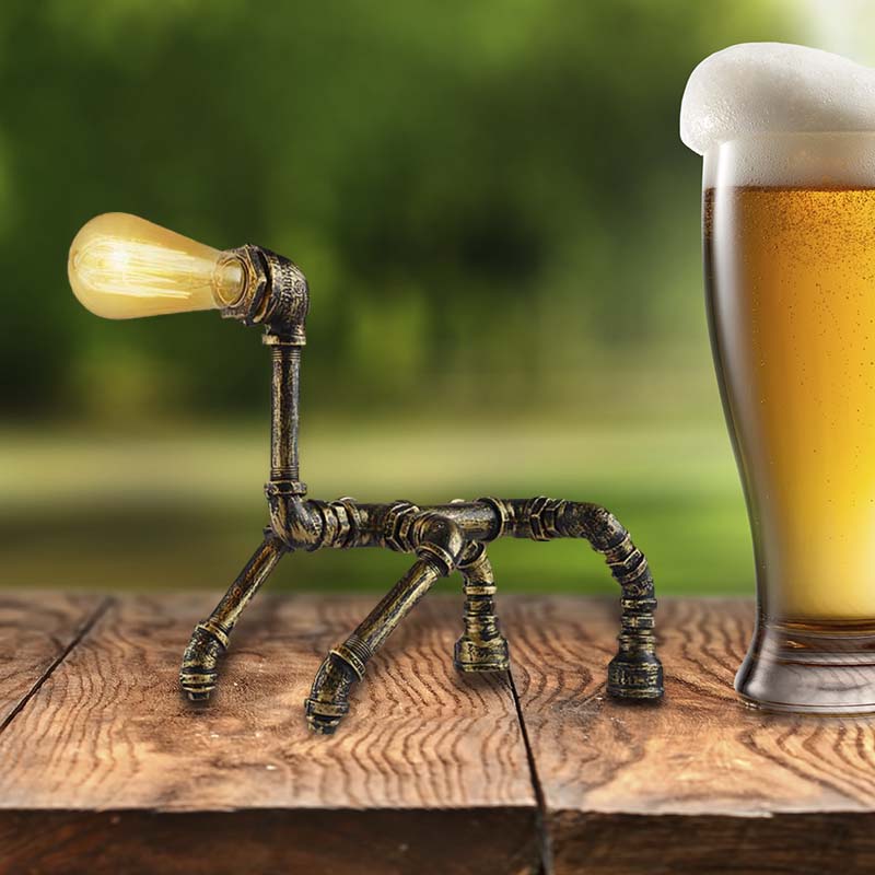 Steampunk Robot Wrought Iron Table Lamp with Pipe Design | Brass/Bronze Finish | Perfect for Children's Room