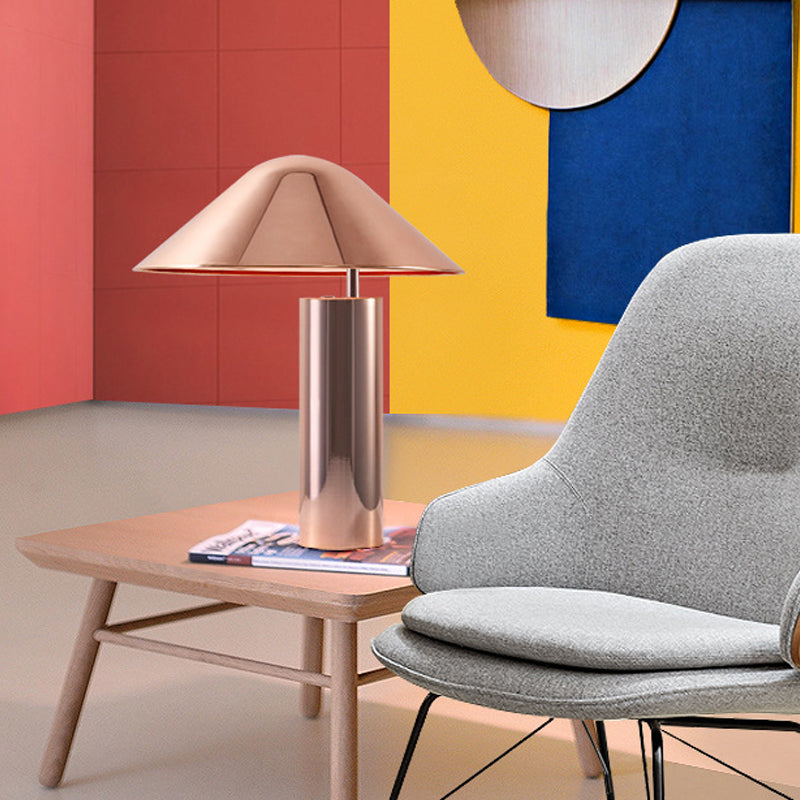 Modern Rose Gold Nightstand Lamp - 2 Bulbs, Living Room Table Light with Conical Metal Shade
