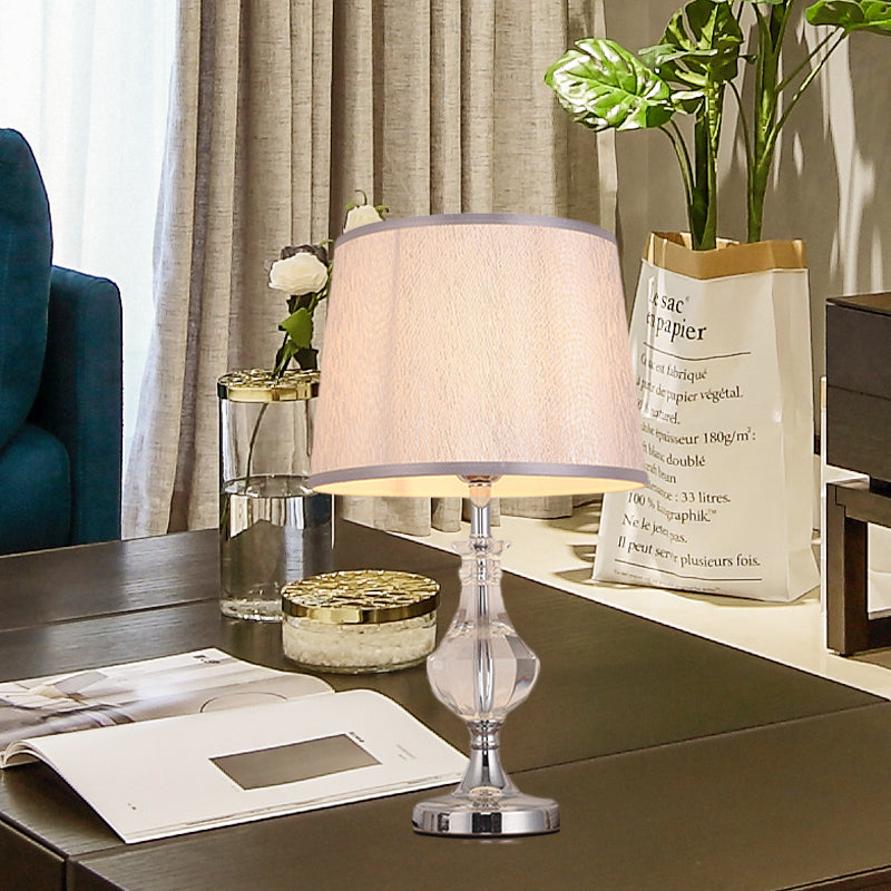 Modern Grey Fabric Task Reading Lamp with Barrel Shade – Perfect for Bedroom Lighting