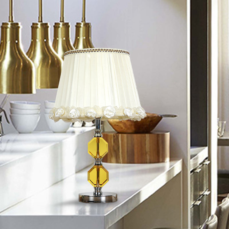 Traditional Beveled Crystal Octagonal Table Lamp With Single Head In White
