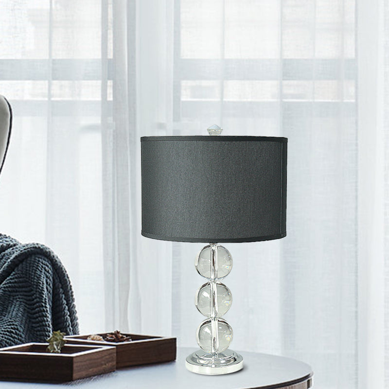 Rustic Black Nightstand Lamp with Fabric Drum Shade and Crystal Ball Deco