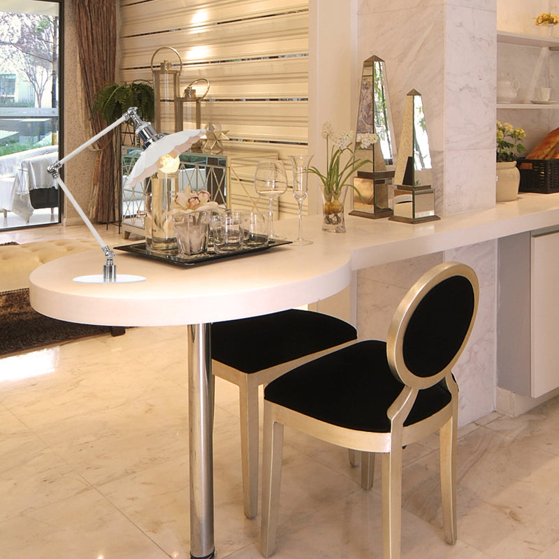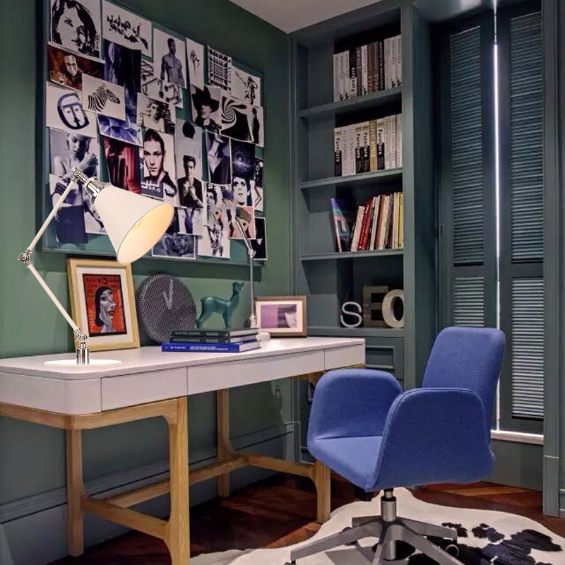Vintage Adjustable Reading Lamp - Conical Desk Light White Metal 1 Stylish Design 8 Length Arm