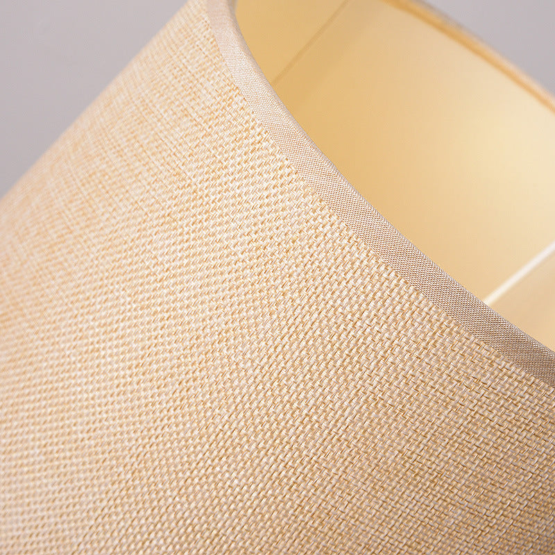 Traditional Flaxen/Grey Nightstand Lamp With Ceramic Base - 1-Light Fabric Drum Desk Light Flaxen /