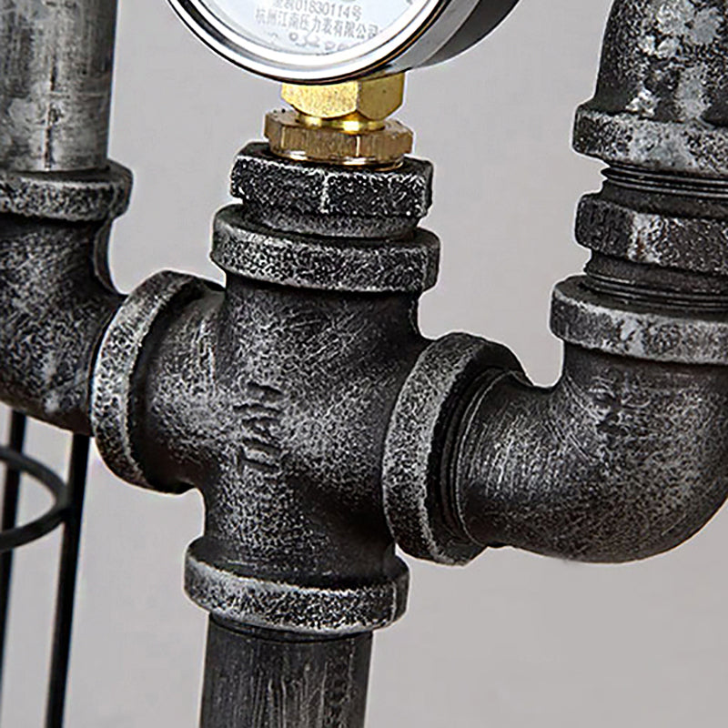 Industrial Wire Guard Table Light With 2 Gauge And Valve Lights - Wrought Iron Standing Lamp In