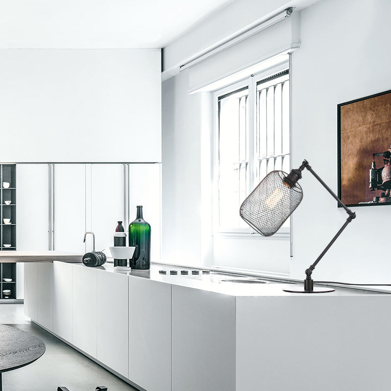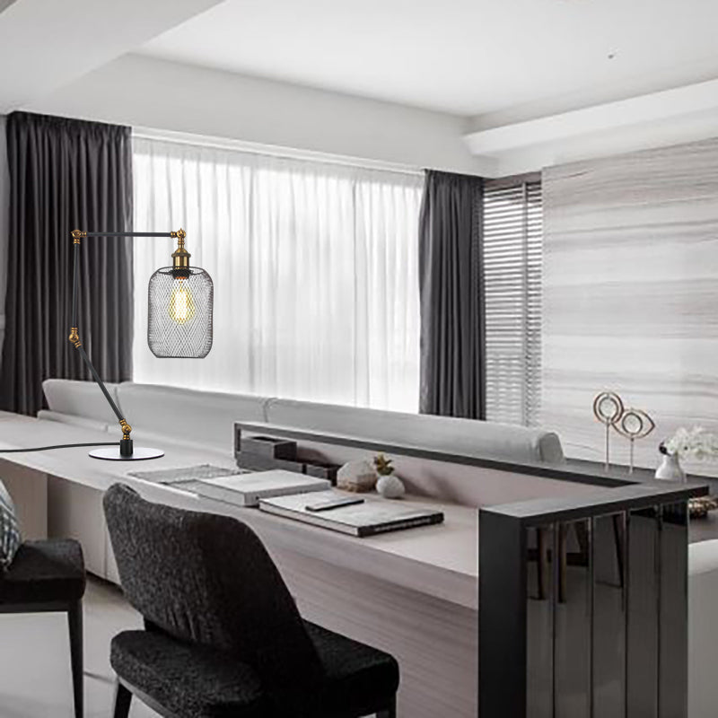 Industrial Style Metal Cylindrical Table Light with Adjustable Black/Brass Finish and Mesh Screen