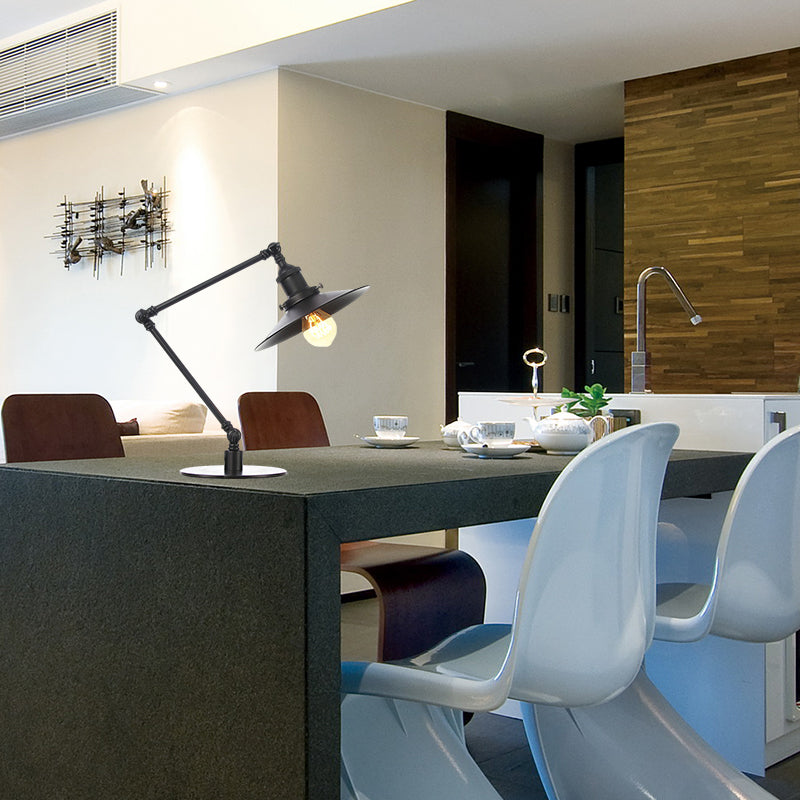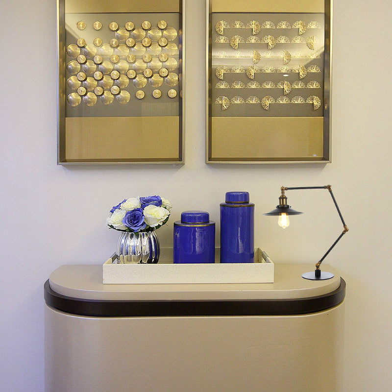 Flared Shade Metal Table Lamp - Farmhouse Style, Adjustable 1 Light, Black/Brass Finish for Bedroom Lighting