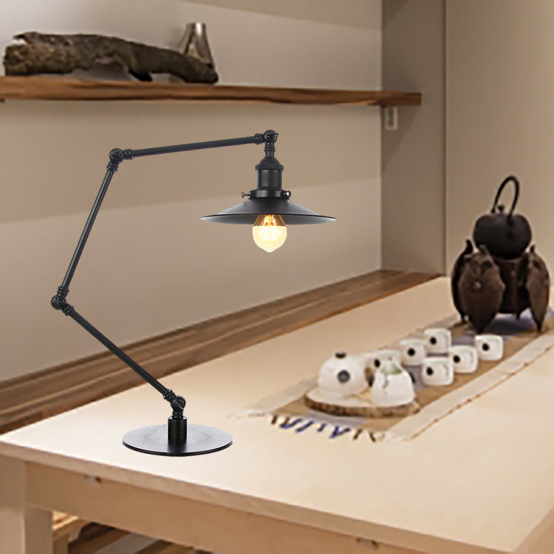 Flared Shade Metal Table Lamp - Farmhouse Style Adjustable 1 Light Black/Brass Finish For Bedroom