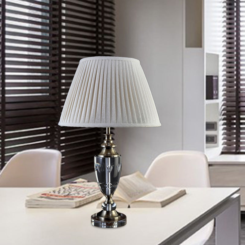 This lamp is a modern and sleek product that would be perfect to have as a nightstand lamp. The shade is a barrel shape and is made out of fabric with a gray color. The lamp also has crystal accents to add a touch of sophistication. The overall dimensions of the product are 16 to 17 inches in width, 21 to 25 inches in height, and 24 inches in length. The voltage of the product is 220V-240V 110V-120V and the light type is LED/Incandescent/Fluorescent. Theproduct also has a bulb base of E26/E27. This product is perfect for anyone who is looking for a stylish and minimalistic lamp for their home.