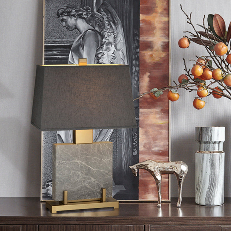 Modernist Grey Trapezoid Reading Light With Fabric Shade - 1 Bulb Task Lighting