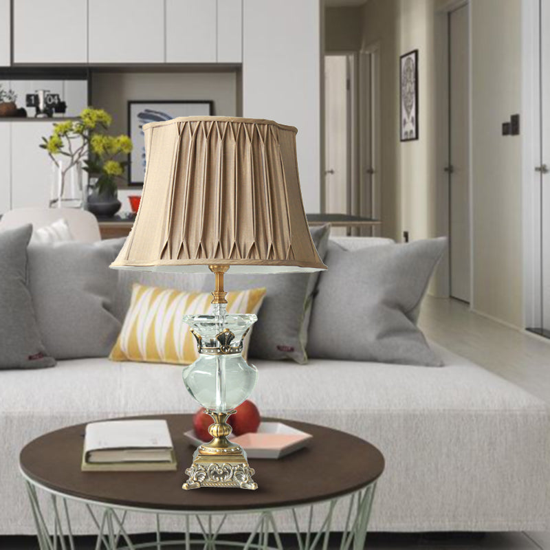 Rustic Single Head Light Brown Table Lamp with Crystal Accent - Pleated Shade, Indoor Nightstand Light