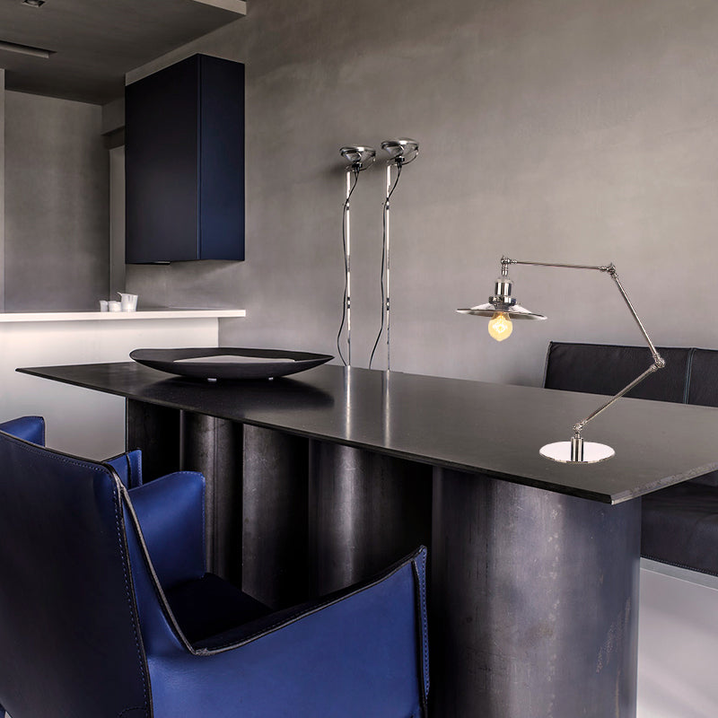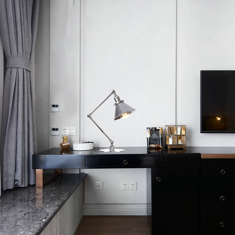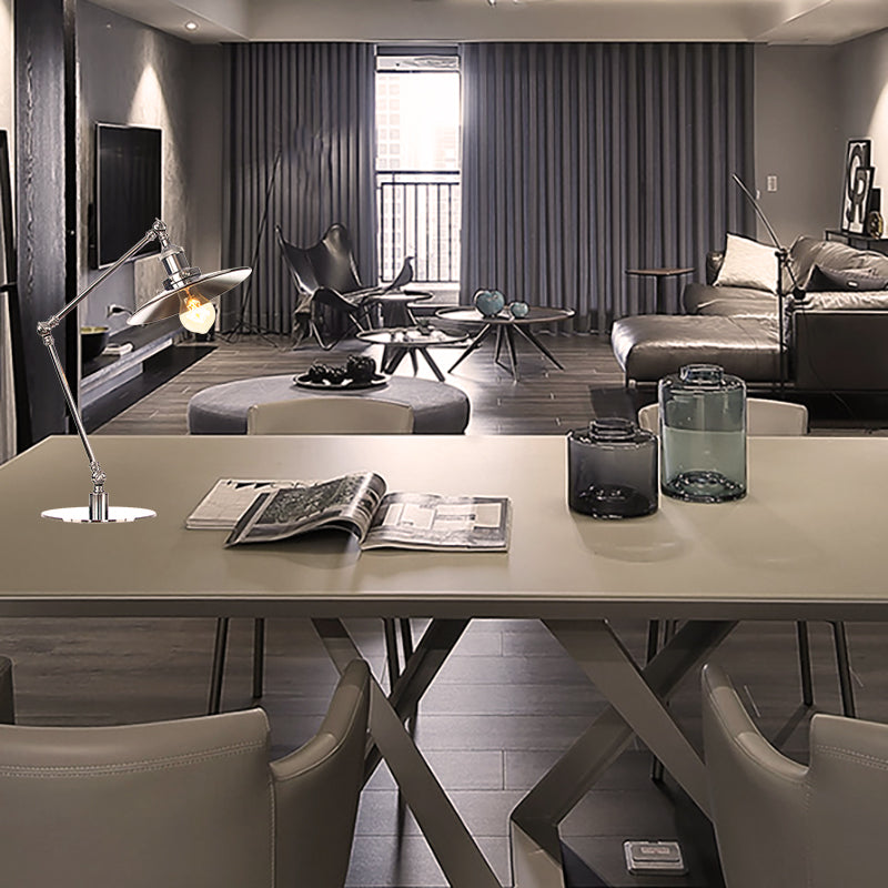 Industrial Metal Desk Light with Adjustable Arm and Chrome Finish for Study Rooms