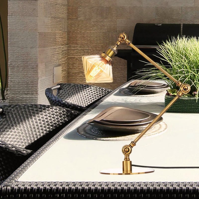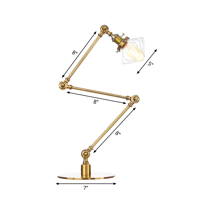 Vintage Diamond Shade Table Lamp: Amber/Clear Glass Adjustable Arm - Black/Brass Copper / Amber B