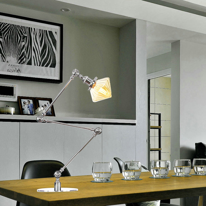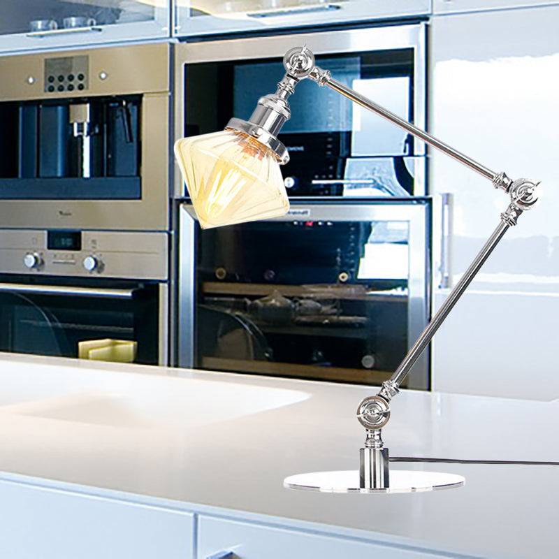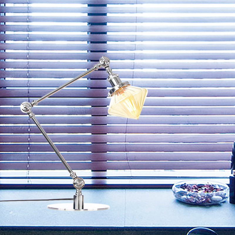 Vintage Diamond Shade Table Lamp: Amber/Clear Glass Adjustable Arm - Black/Brass Chrome / Amber A