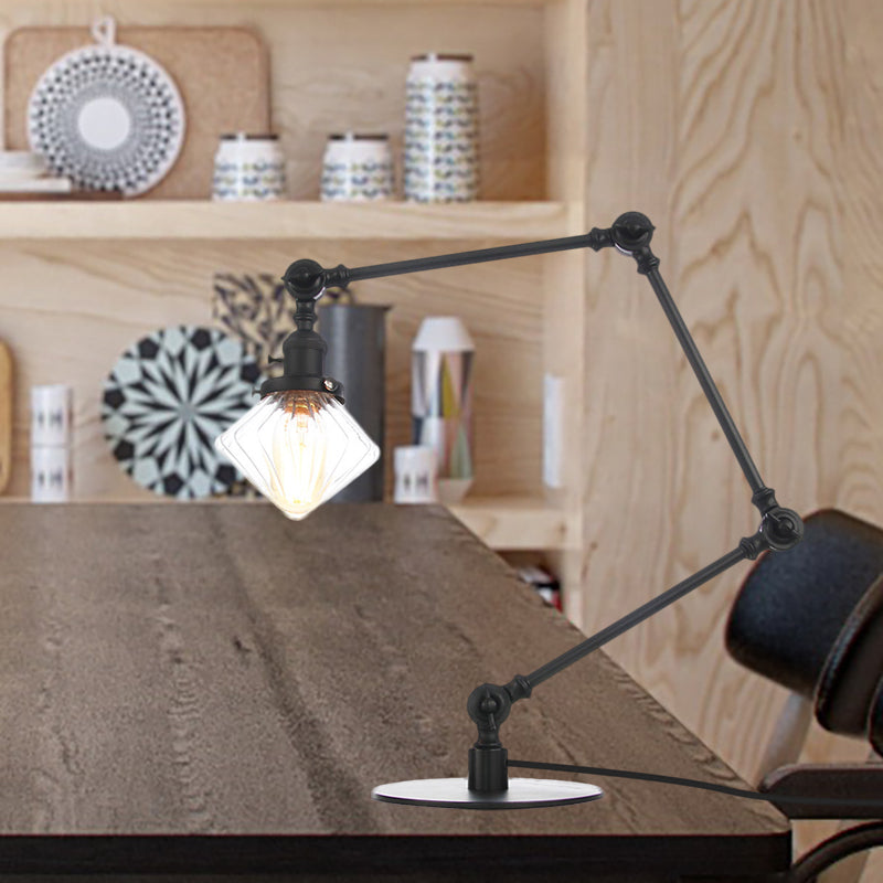 Vintage Diamond Shade Table Lamp: Amber/Clear Glass Adjustable Arm - Black/Brass Black / Amber B