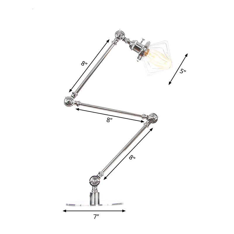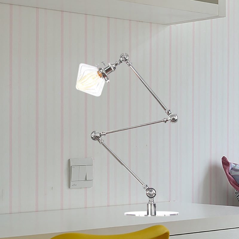 Vintage Diamond Shade Table Lamp: Amber/Clear Glass Adjustable Arm - Black/Brass Chrome / Clear B