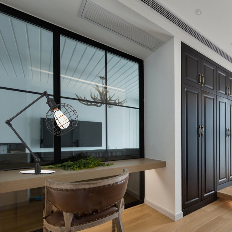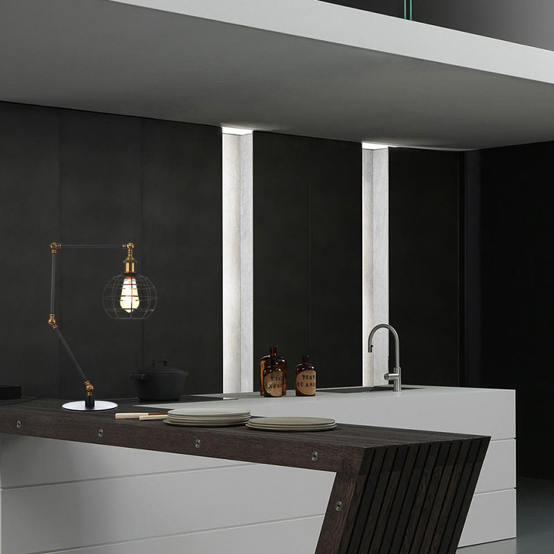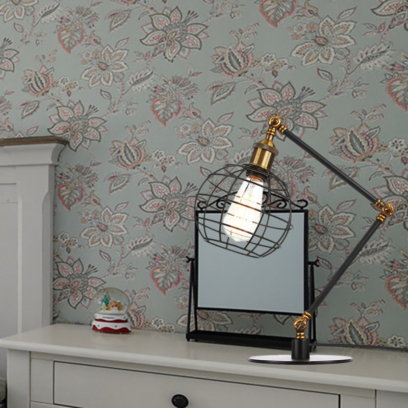 Wire Guard Coffee Shop Table Lamp - Metal 1 Head Light With Global Shade Black/Brass Finish Black /