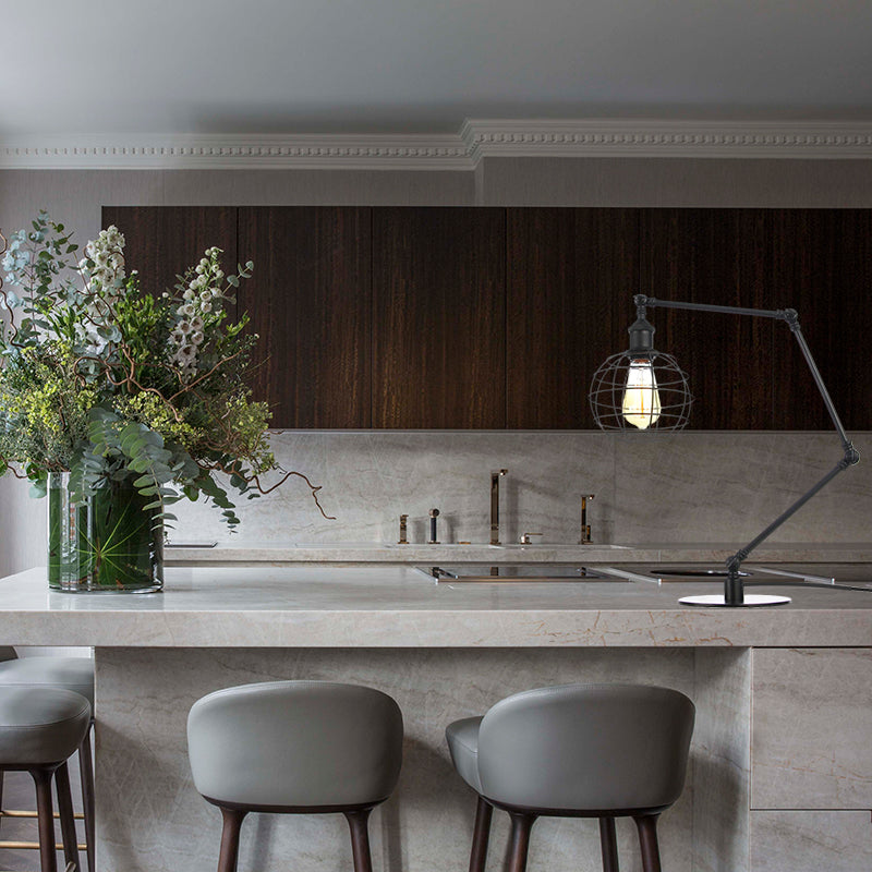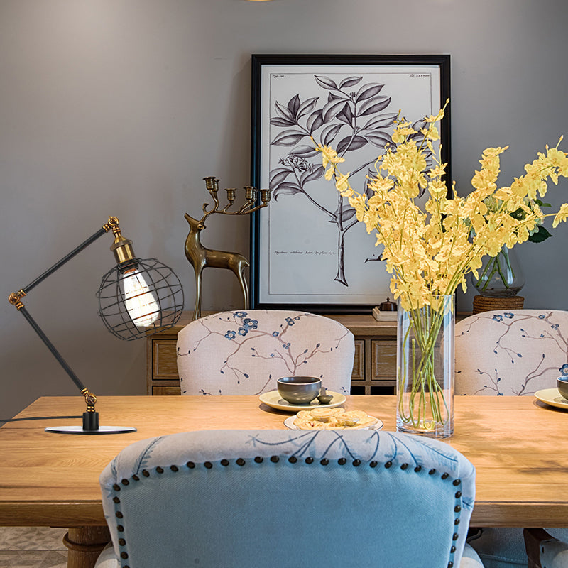 Wire Guard Coffee Shop Table Lamp - Metal 1 Head Light with Global Shade, Black/Brass Finish