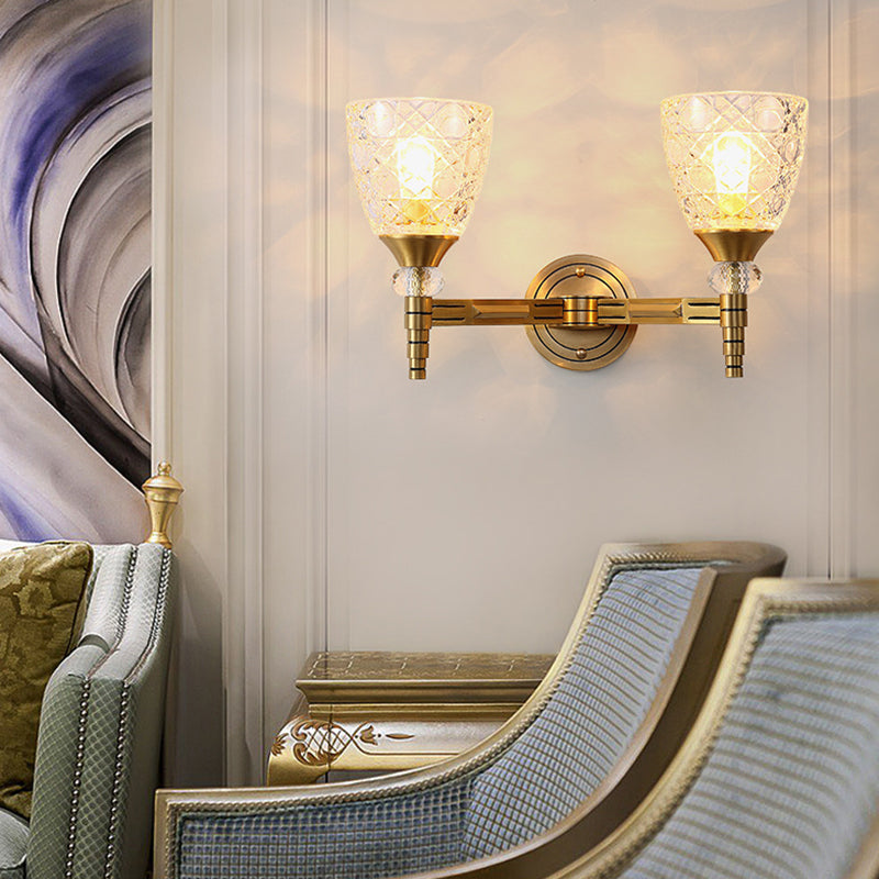 Lattice Glass Wall Lamp With Brass Finish - Loft Bedroom Mount Light 2 /