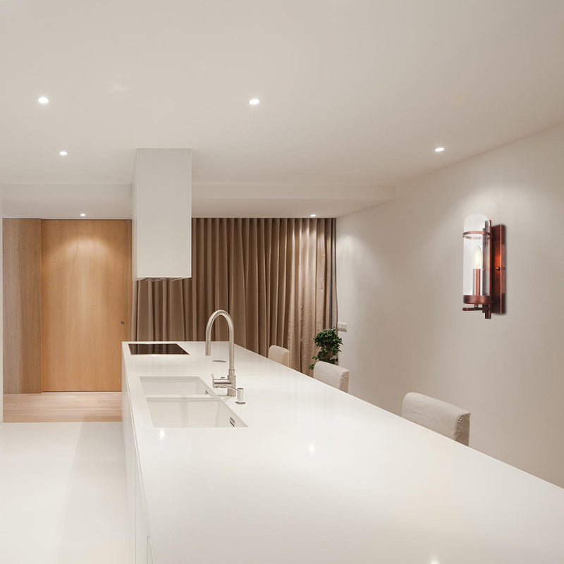 Industrial Rust Clear Glass Sconce Light Fixture for Dining Room - 1-Light Tubular Wall Lamp