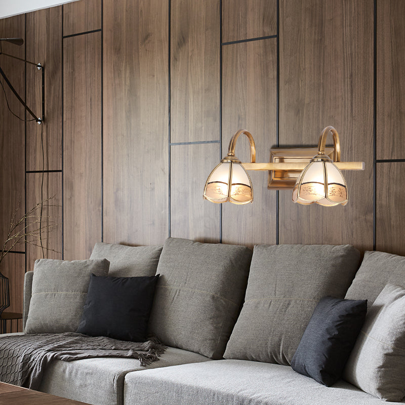 Traditional Brass Wall Sconce With Frosted Glass Dome Shade - 2/3 Bulb Vanity Light Fixture