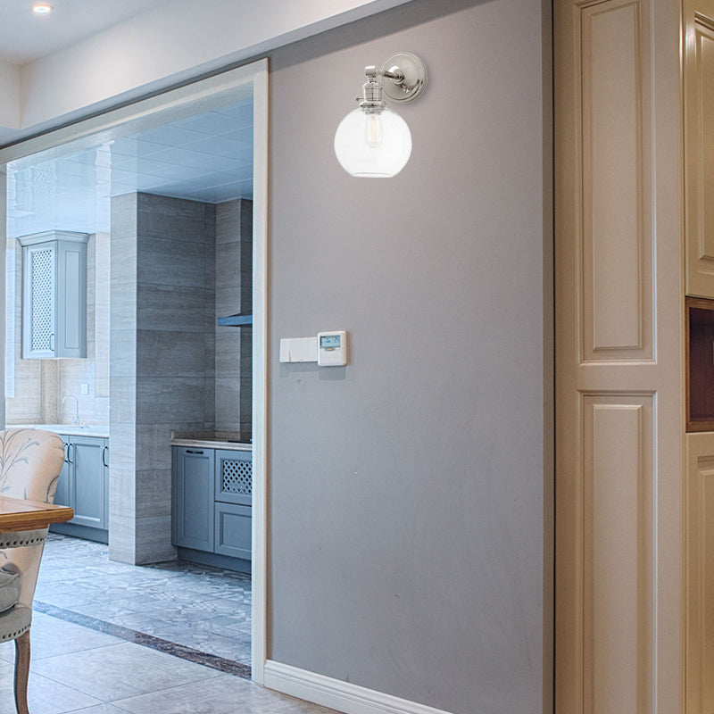 Industrial Wall Lamp Fixture: Clear Glass Chrome/Nickel Sconce Light Globe 1-Light For Living Room