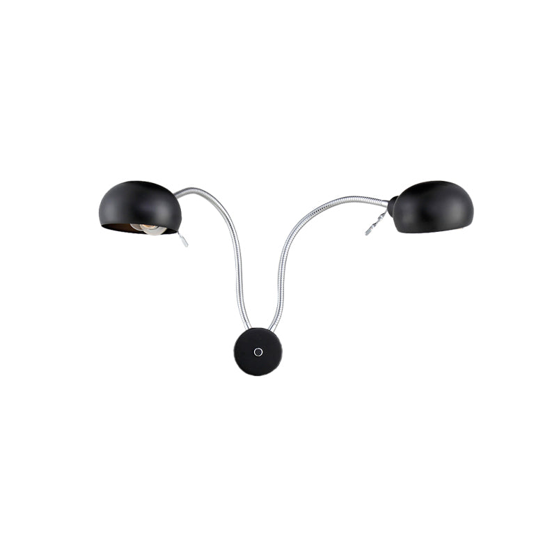 Industrial Style Double Domed Metal Wall Sconce - 2-Light Bedroom Wall Fixture with Flexible Arm (Black/Chrome)