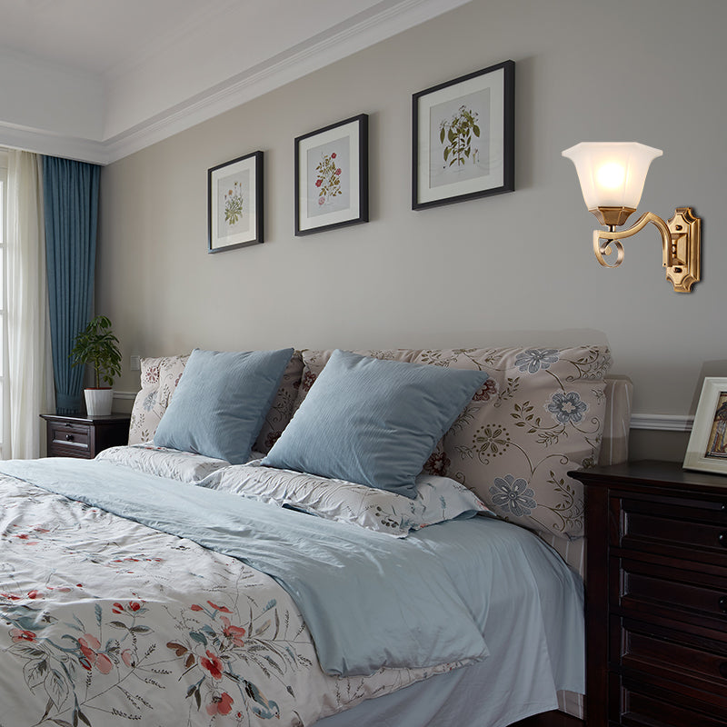 Modern Floral Corridor Wall Sconce With Opal Glass And Gold Metallic Finish