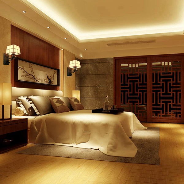 Stylish Pink/Blue/Beige Square Tiffany Style Stained Glass Wall Light - Bedroom Wall Mount