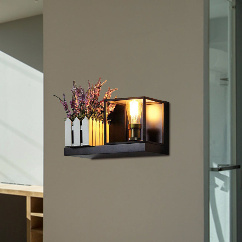 Industrial Metal Bedside Wall Sconce Light - Square Black Wall Fixture with One Light